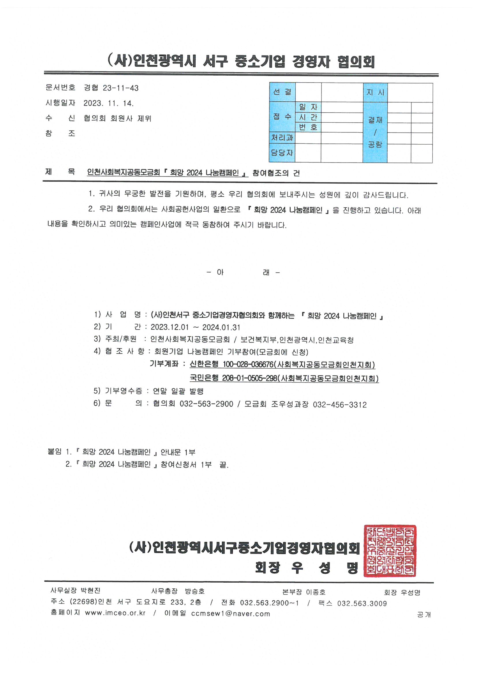 ÀÎõ»çȸº¹Áö°øµ¿¸ð±Ýȸ¡º Èñ¸Á 2024 ³ª´®Ä·ÆäÀÎ ¡» Âü¿©ÇùÁ¶ÀÇ °Ç