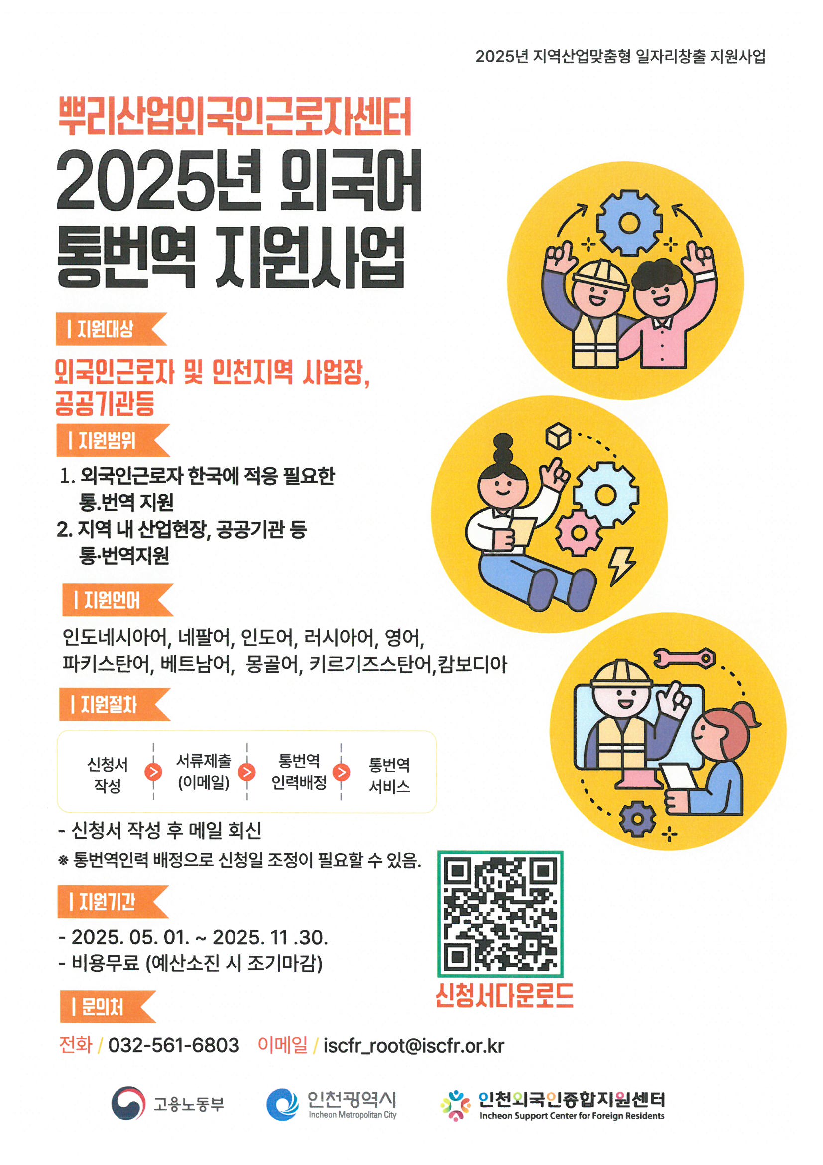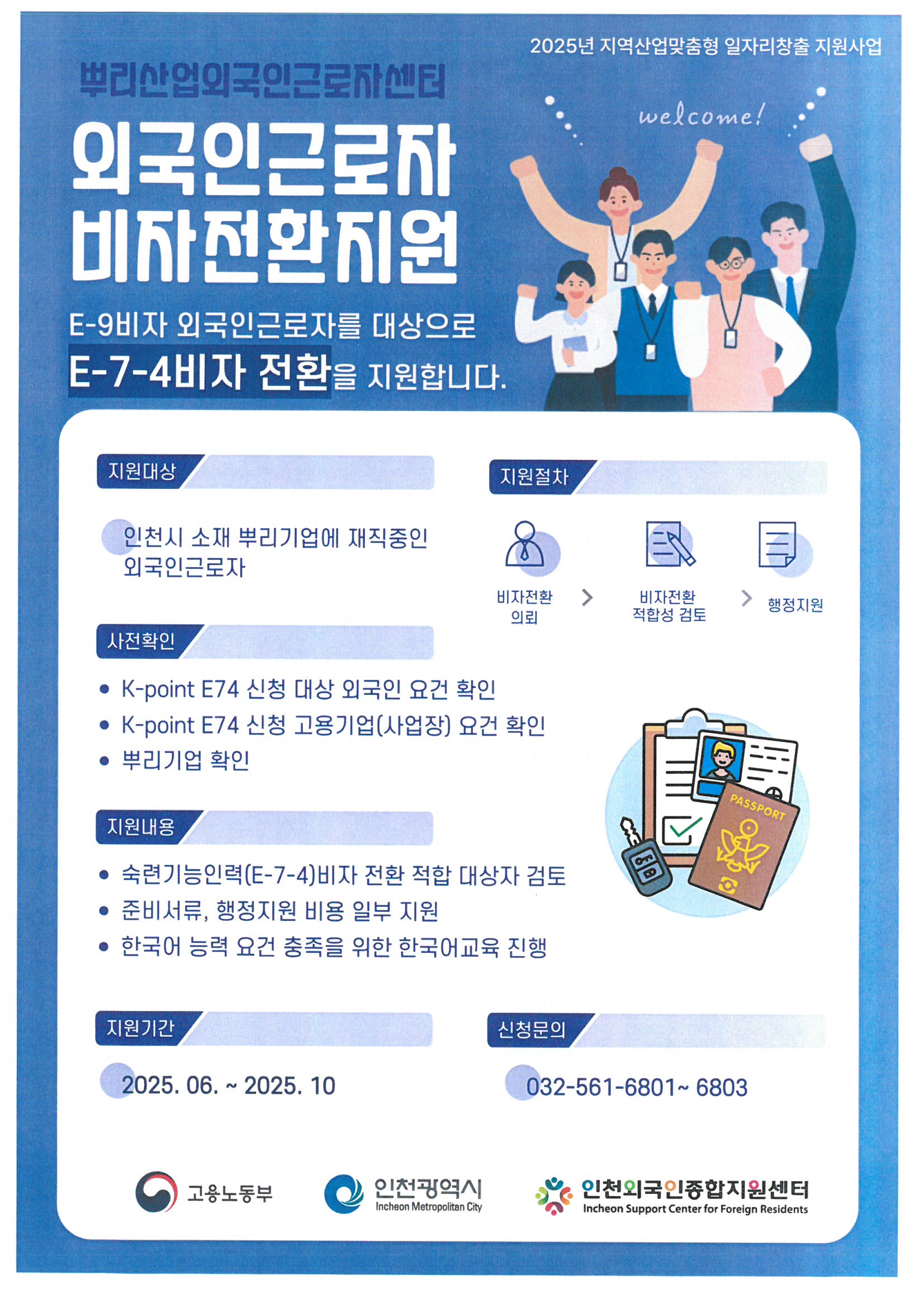 ÀÌ¿¡ µû¶ó, ÀÎõ±¤¿ª½Ã¿Í °í¿ë³ëµ¿ºÎ¿¡¼´Â ´ÙÀ½°ú °°Àº ¿Ü±¹ÀαٷÎÀÚ ´ë»ó Áö¿ø»ç¾÷À» ÁøÇàÇϰí ÀÖ¾î ¾È³»µå¸³´Ï´Ù.