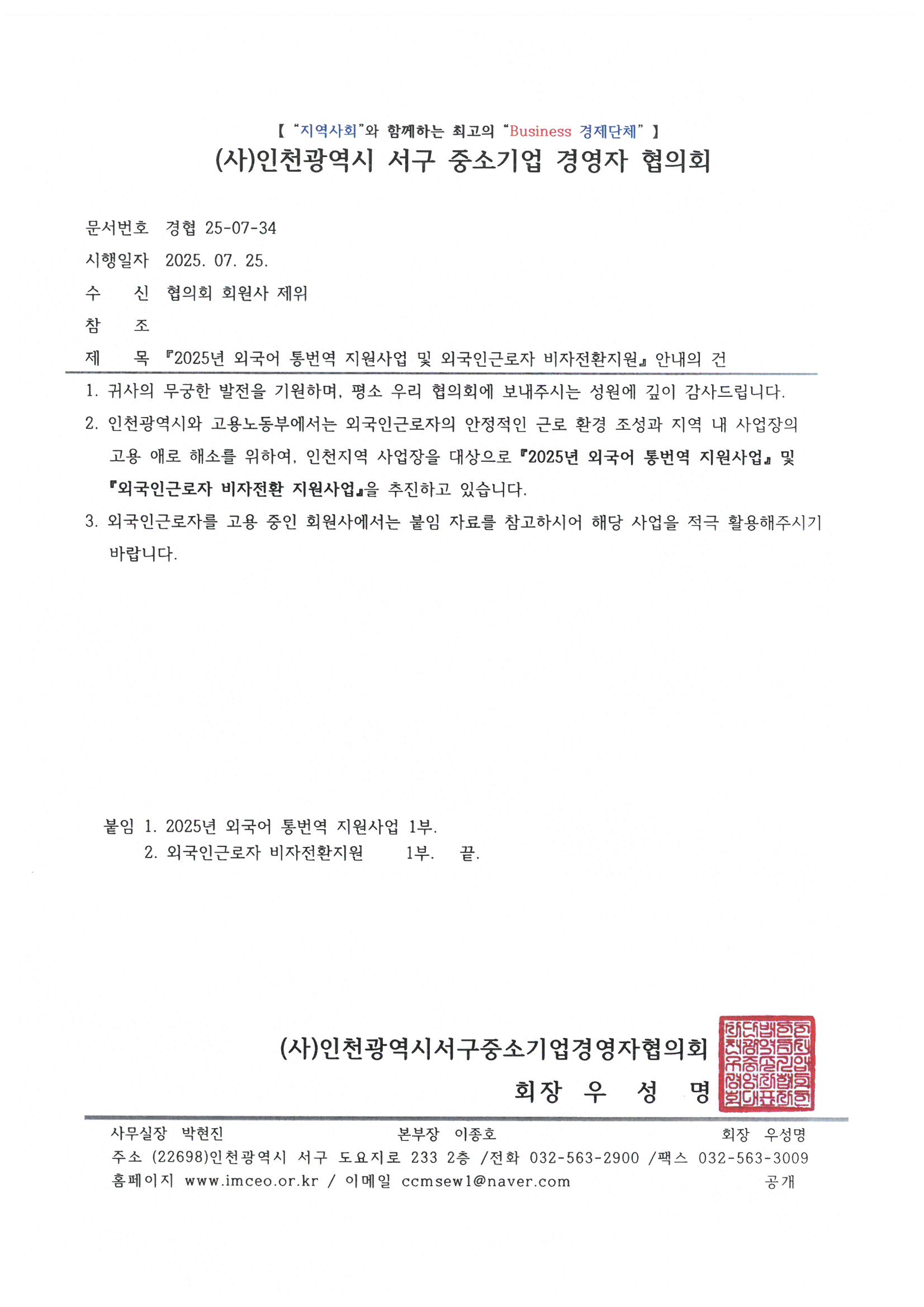 2025.07.25 ¡º2025³â ¿Ü±¹¾î Åë¹ø¿ª Áö¿ø»ç¾÷ ¹× ¿Ü±¹ÀαٷÎÀÚ ºñÀÚÀüȯÁö¿ø¡» ¾È³»ÀÇ °Ç