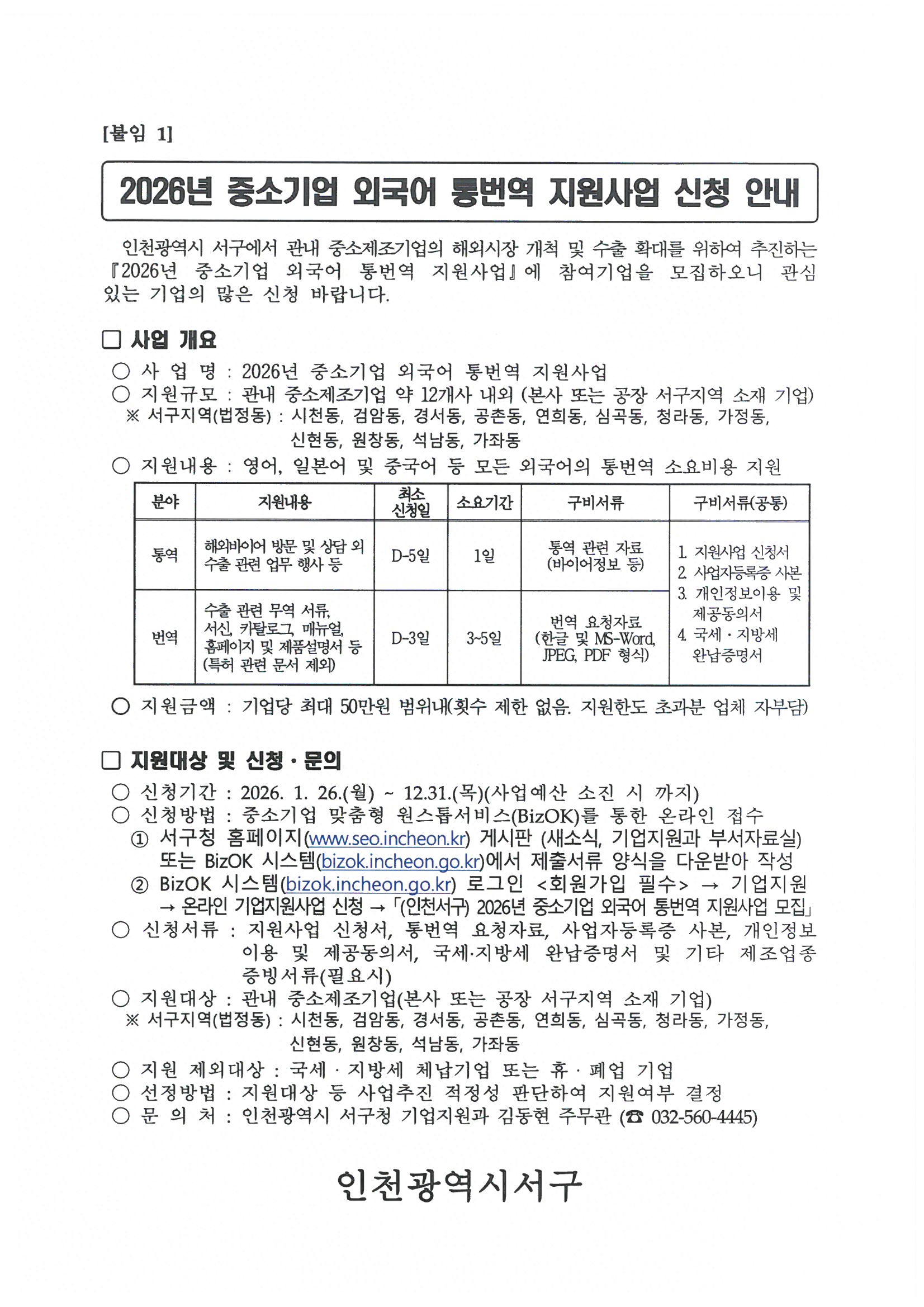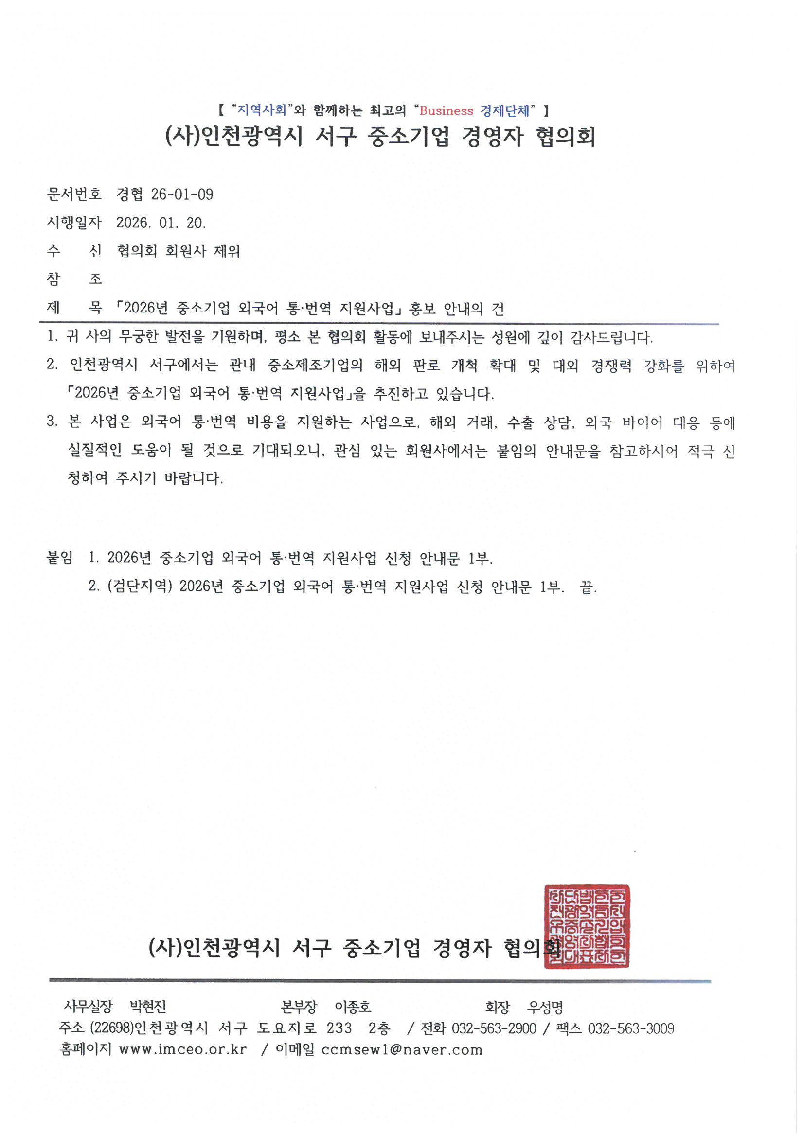 ¡¸2026³â Áß¼Ò±â¾÷ ¿Ü±¹¾î Å롤¹ø¿ª Áö¿ø»ç¾÷¡¹ È«º¸ ¾È³»ÀÇ °Ç