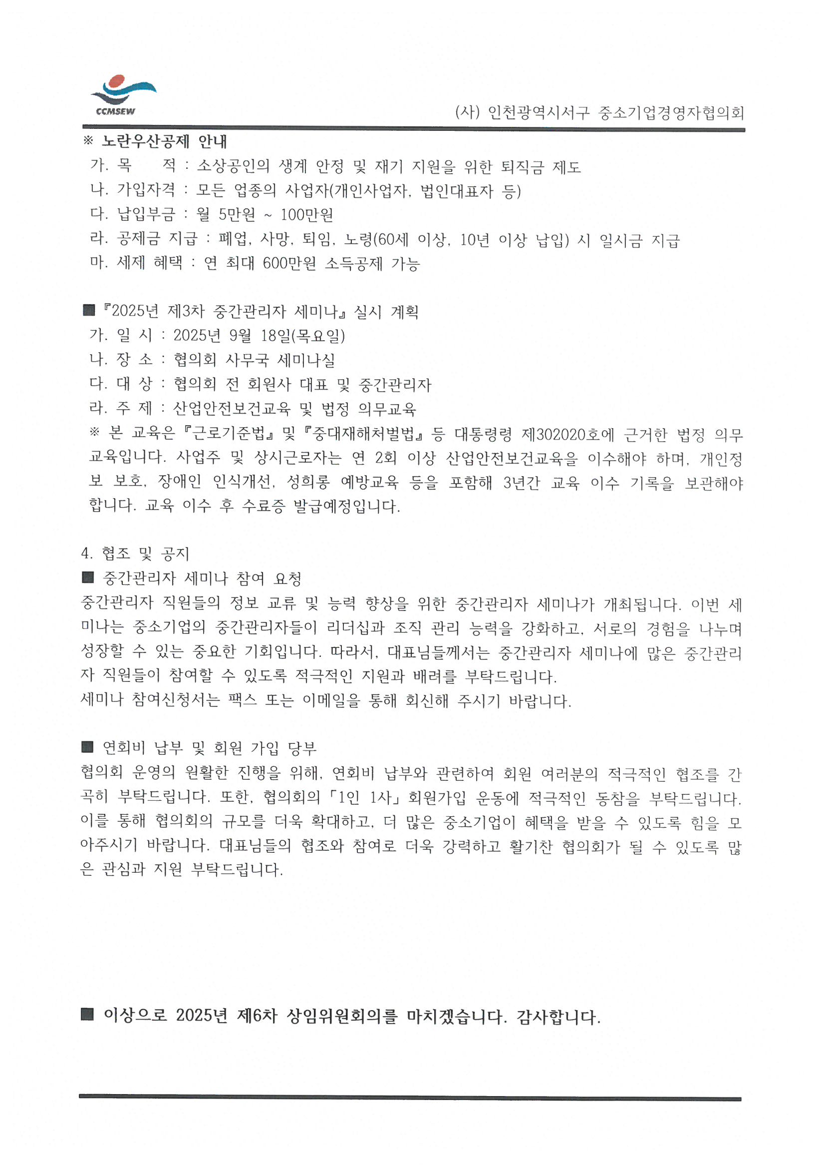 ¡º2025³â Á¦6Â÷ »óÀÓÀ§¿øÈ¸ º¸°í¼¡»