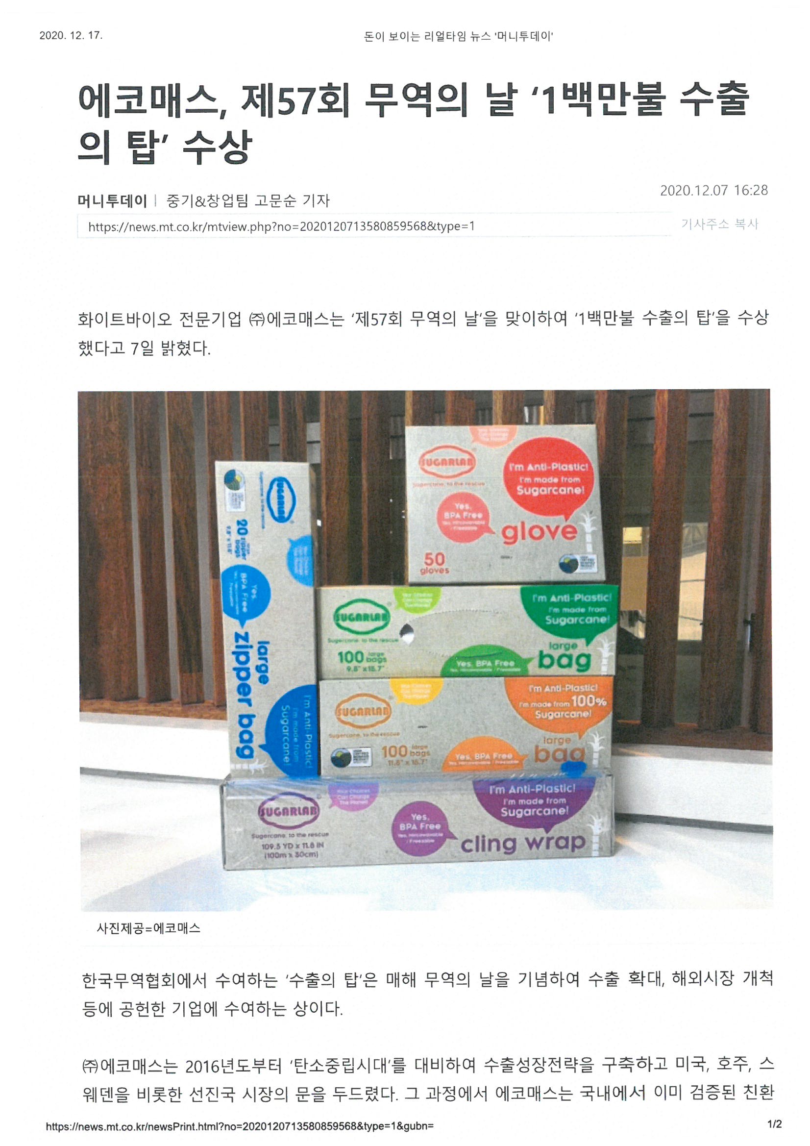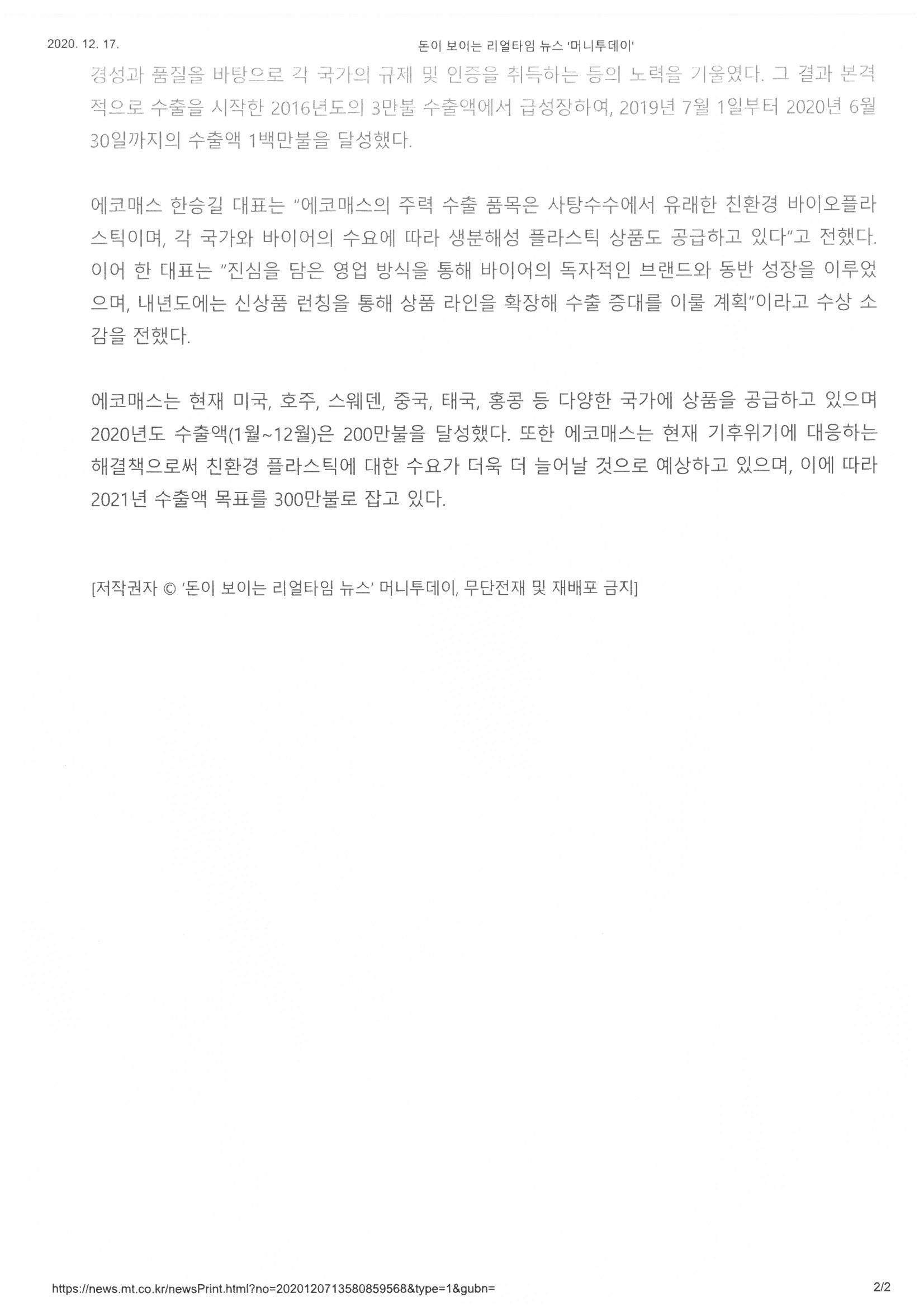 2020.12.07 ¿¡ÄڸŽº 1¹é¸¸ºÒ ¼öÃâÀÇ Å¾ ¼ö»ó