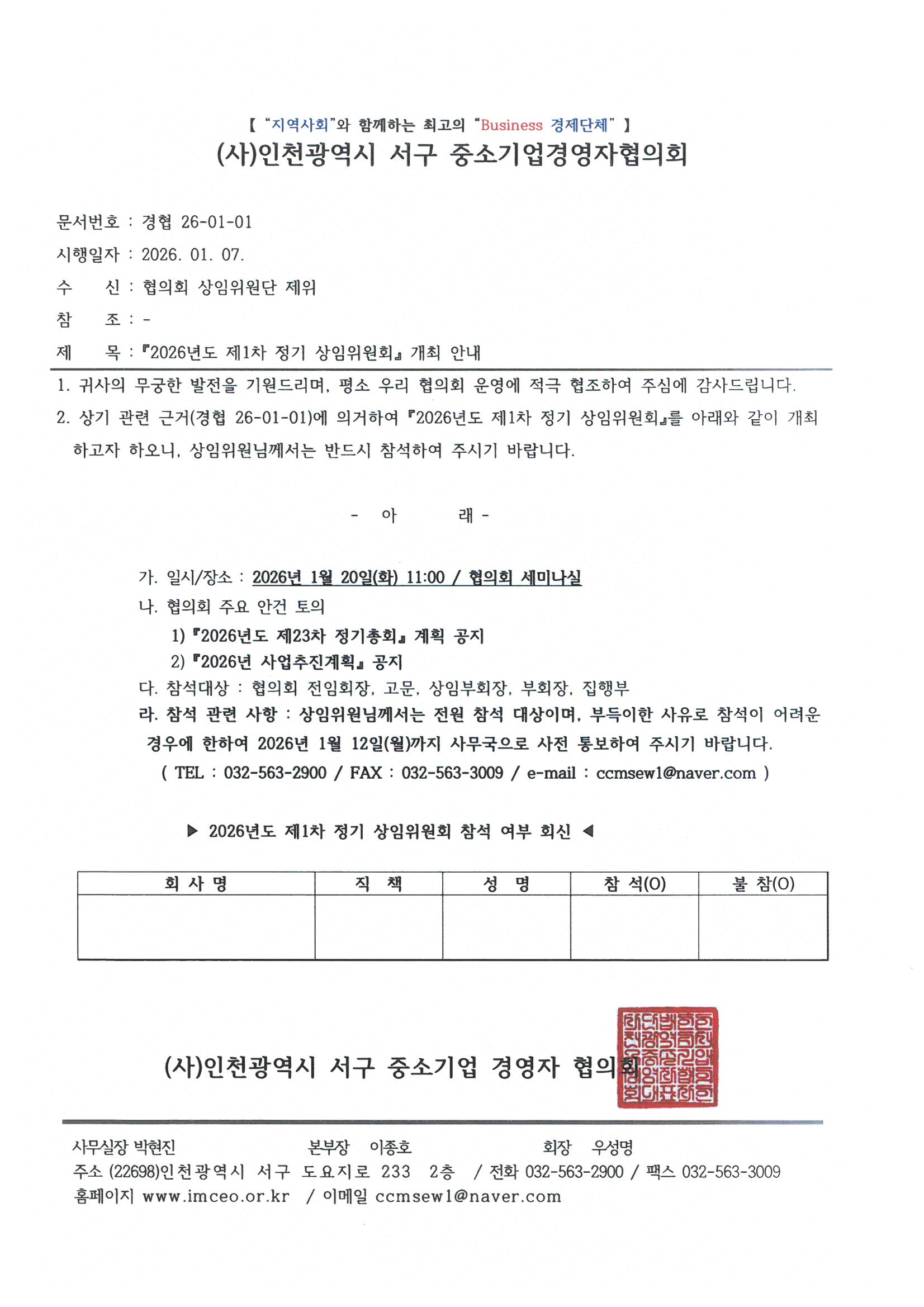 ¡º2026³âµµ Á¦1Â÷ Á¤±â »óÀÓÀ§¿øÈ¸¡» °³ÃÖ ¾È³»