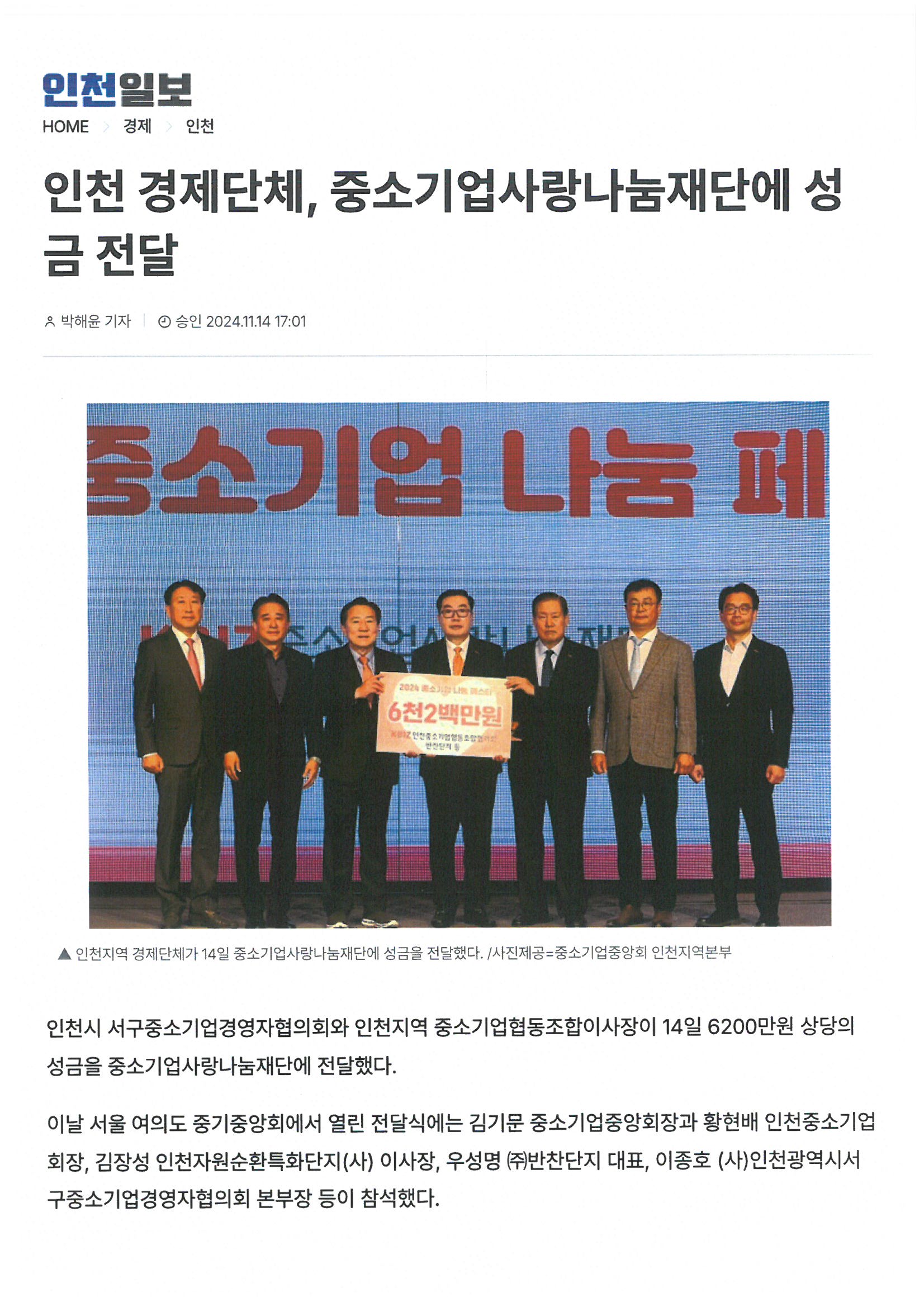 ÀÎõ °æÁ¦´Üü,Áß¼Ò±â¾÷»ç¶û³ª´®Àç´Ü¿¡ ¼º±ÝÀü´Þ