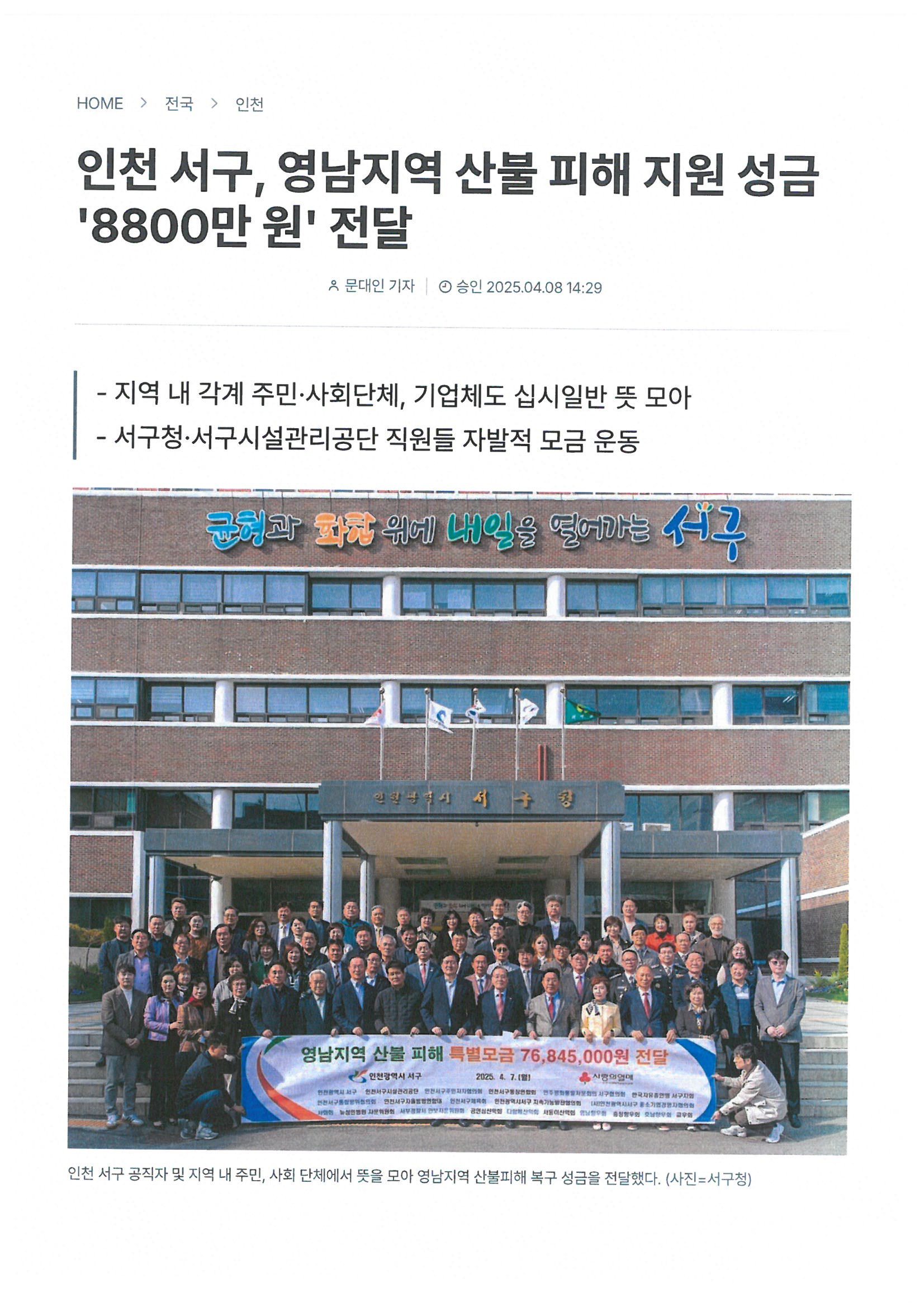 2025³â ÀÎõ ¼±¸, ¿µ³²Áö¿ª»êºÒ ÇÇÇØÁö¿ø ¼º±Ý Àü´Þ..