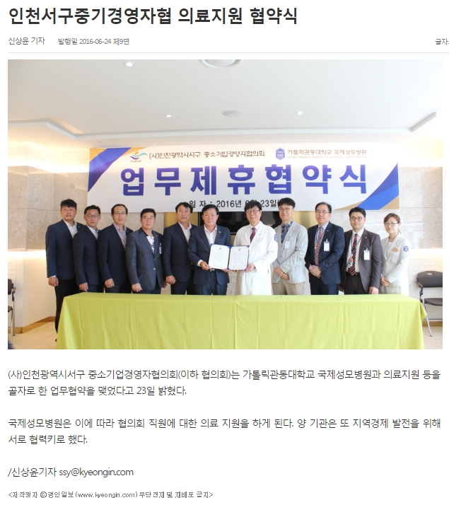 2016.06.23 ±¹Á¦¼º¸ðº´¿ø°úÀÇ ¾÷¹« Çù¾à½Ä