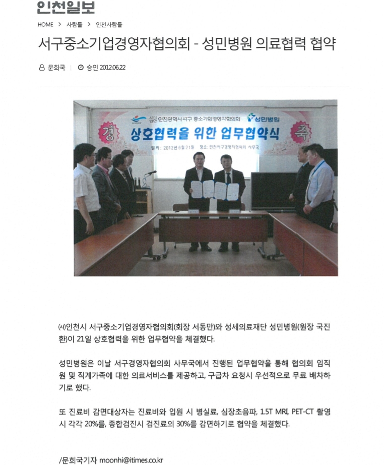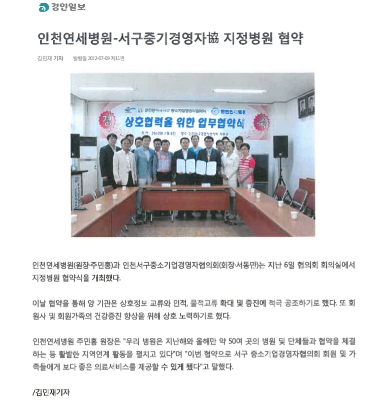 2012.07.06 ÀÎõ¿¬¼¼º´¿ø »óÈ£Çù·ÂÀ» À§ÇÑ ¾÷¹«Çù¾à(..