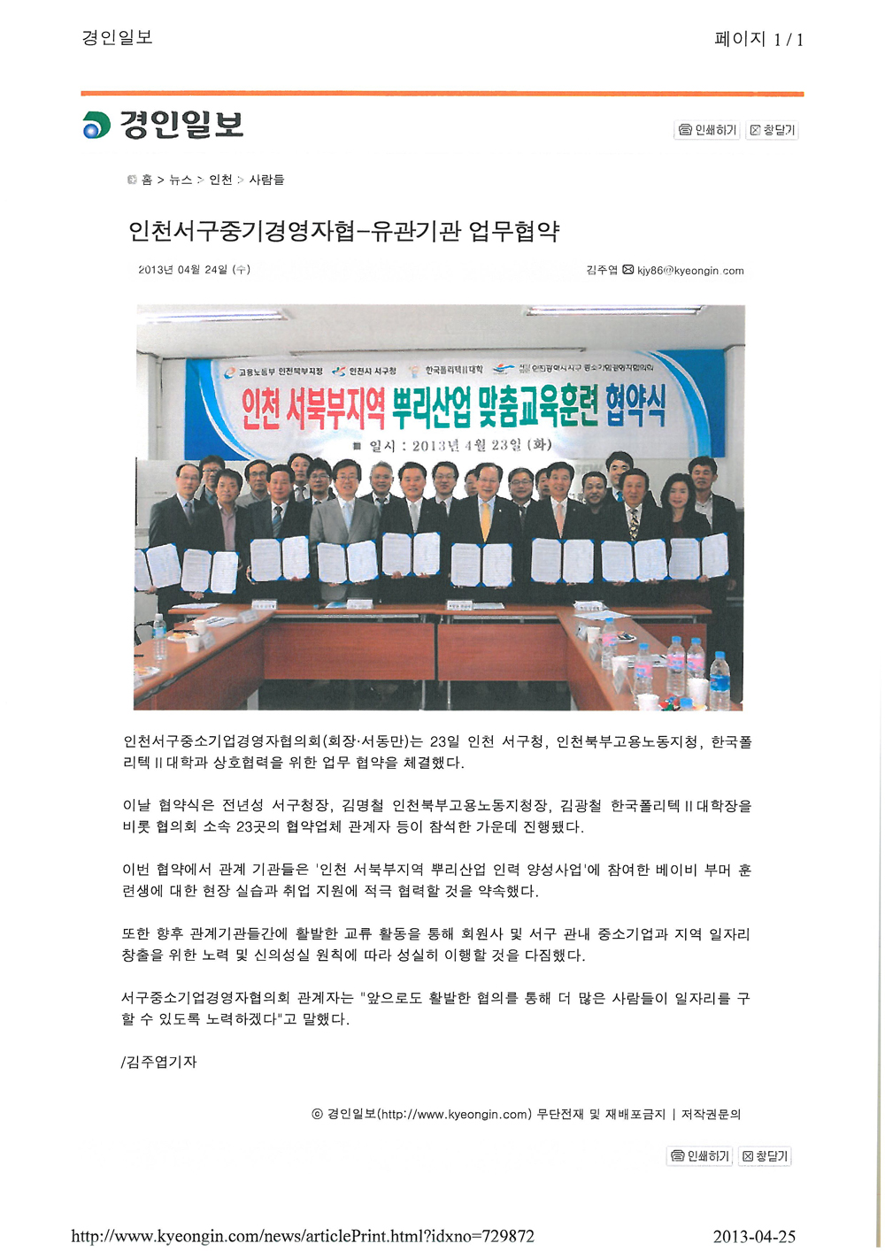 2013.04.23 »Ñ¸®»ê¾÷ ¸ÂÃã±³À°ÈÆ·Ã Çù¾à½Ä(°æÀÎÀϺ¸)