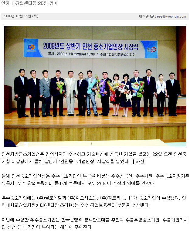 2009.07.22 ÀÎõÁß¼Ò±â¾÷Àλó ¼ö»ó(°æÀÎÀϺ¸)