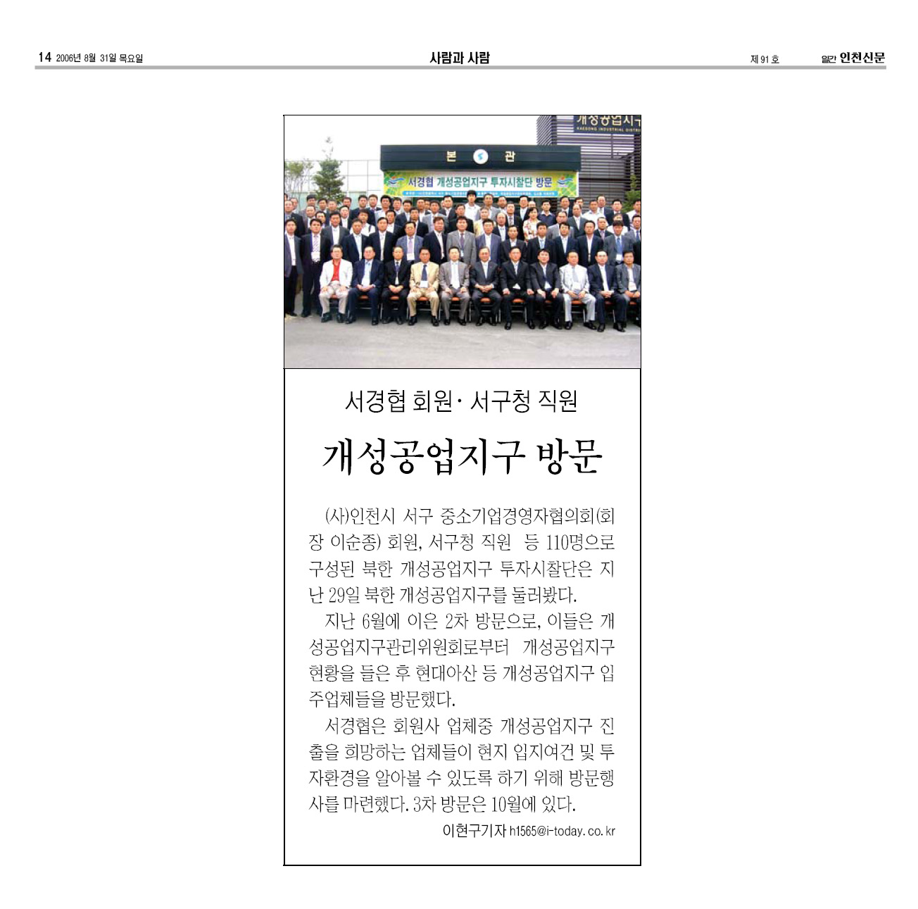 2006.08.29 ¼°æÇù ȸ¿ø °³¼º°ø¾÷Áö±¸ ¹æ¹®(ÀÎõ½Å¹®)
