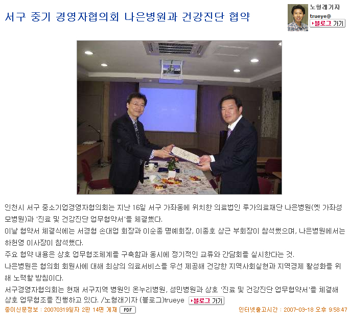 2007.03.16 ³ªÀºº´¿ø ¾÷¹«Çù¾à(ÀÎõÀϺ¸)