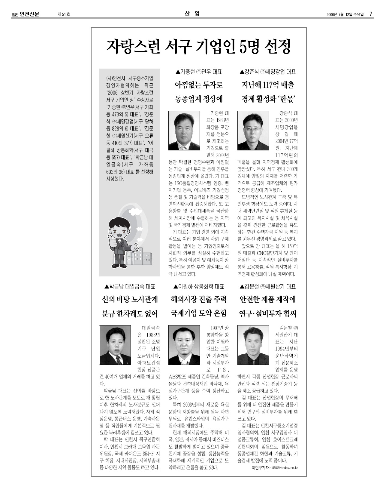 2006.07.12 ÀÚ¶û½º·± ¼±¸ ±â¾÷ÀÎ 5¸í ¼±Á¤(ÀÎõ½Å¹®)